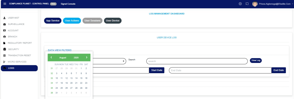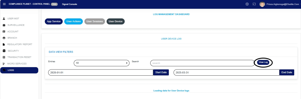 STEP 4: Click “View Log” (Fig. 28.6g below) to view the User Device log for the selected date range.