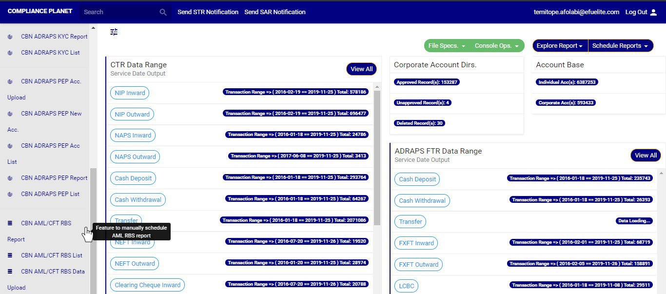 The compliance planet software allows you to schedule AML/CFT RBS report ahead of time. You can manually schedule and download AML RBS reports. Here is how to do this.