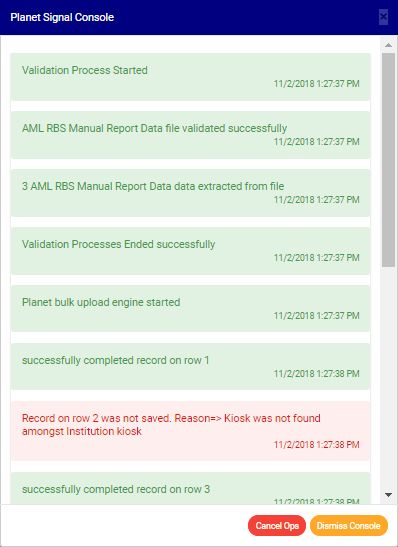 ➔ You can terminate unfinished processes by clicking CANCEL OPS.. Click on ‘Dismiss Console’ to close the signal console.