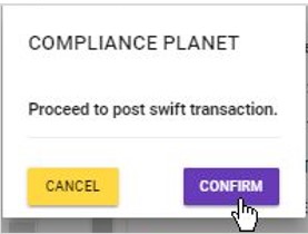 This displays a confirmation console to confirm the processing of the message. Click on ‘Confirm’ to proceed or ‘Cancel’ terminate the operation.
