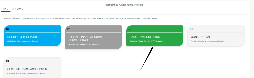 STEP 1: From the app dashboard, click “SANCTION SCREENING” as seen in Fig.8a. below.