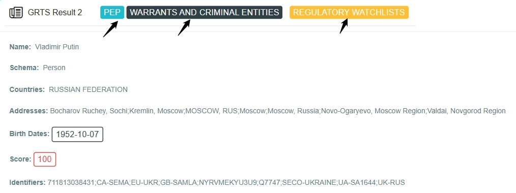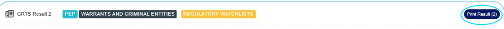 REGULATORY WATCHLIST: The search result confirms that the customer has been identified under the regulatory watch list.