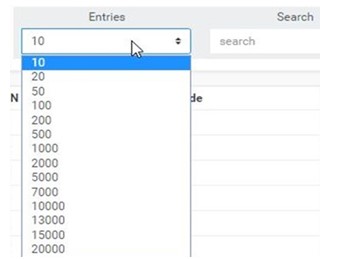 Click on the ‘ENTRIES’ box to adjust the number of account schemes you see per page. See how to adjust the number of entries per page in fig. 12.2g.