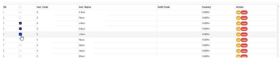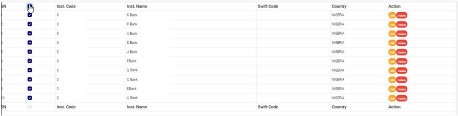 To select or deselect all the account schemes on a page, click on the checkbox of the table title bar as in fig. 12.2o. This checkbox is between SN and Scheme Code.