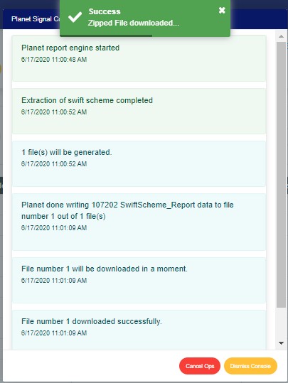 If you proceed with the download, the signal console will show ongoing processes as in fig 12.2s below, and when download is complete, a notification will be displayed at the top of the page.