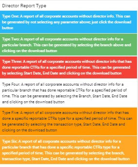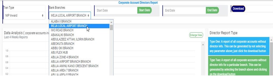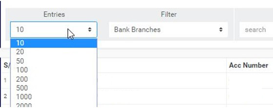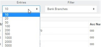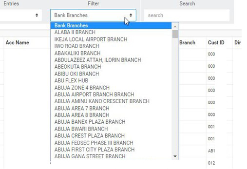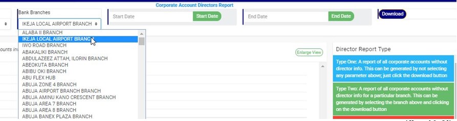 ➔ To see approved director information of corporate accounts for any of the branches, select the branch name from the filter box as seen in fig. 10.5d below. The default list is always for all branches of the institution.