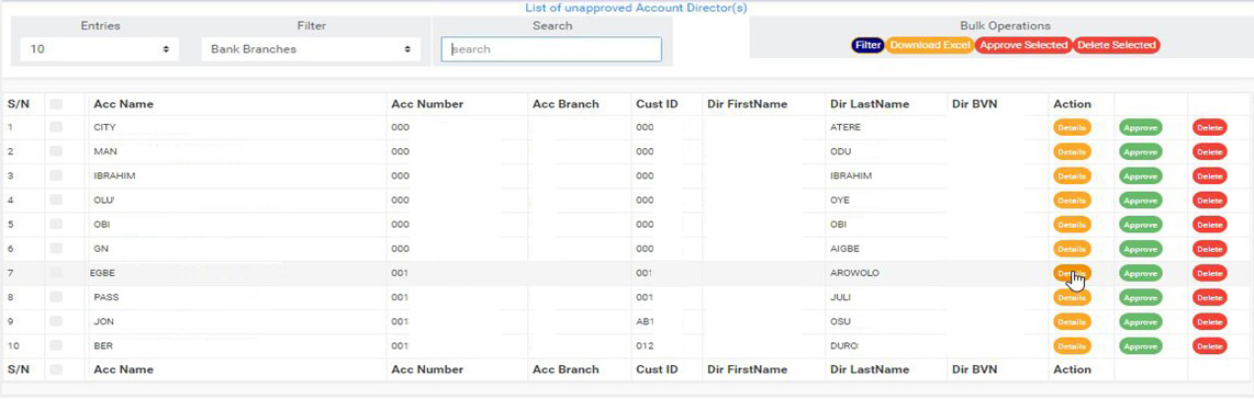 1. Click on ‘DETAILS’ as in fig. 10.5f below to view the details of a corporate account director.