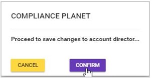 ● Click ‘SAVE’ to save the changes. A confirmation console will be displayed to confirm you want to make the changes. Click on ‘CONFIRM’ as shown in fig. 10.5j to proceed or ‘CANCEL’ to go back to the ‘Edit Corporate Account Director’ console.
