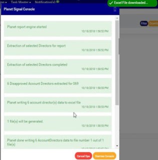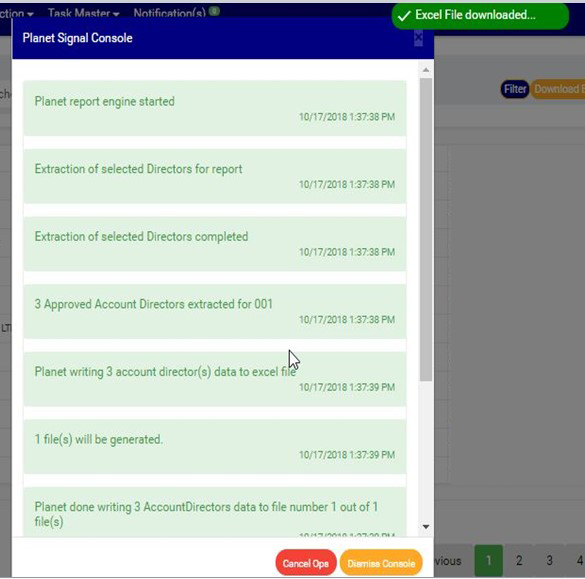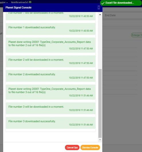 ➔ The signal console shows on going processes. An example of a signal console is fig 10.5x and a notification will be displayed at the top of the page when the download of the excel file is complete.