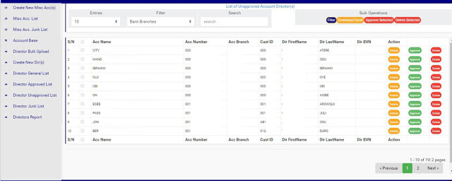 NOTE: Only person(s) profiled as deputy supreme Admin and assigned right(s) to “view directors list” and “Edit ” account director records will be able to carryout this operation.