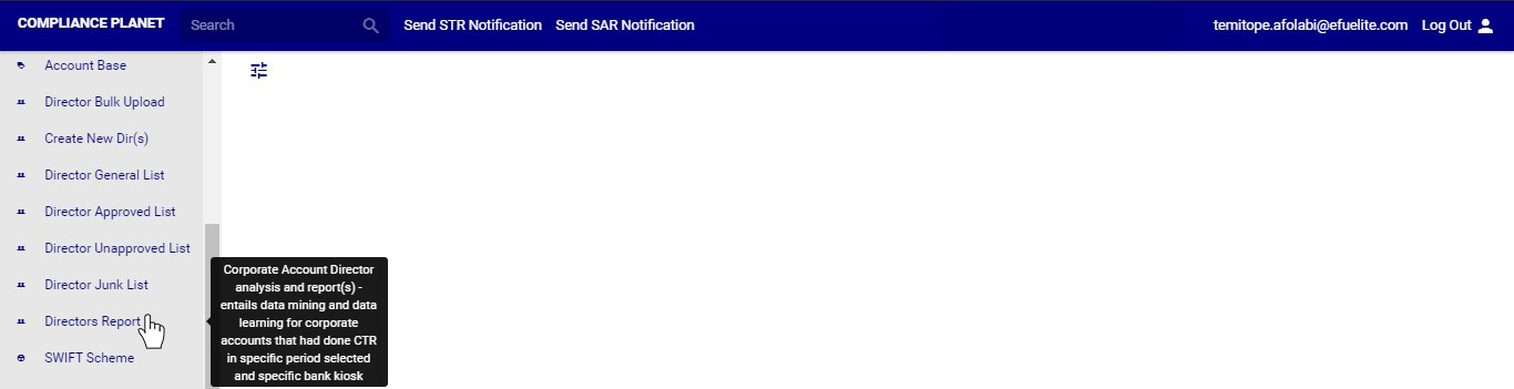 NOTE Only person(s) profiled as deputy supreme Admin and assigned right(s) to “view directors list” and “download excel report” will be able to carryout this operation.