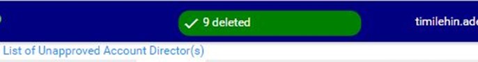 NOTE Only person(s) profiled as deputy supreme Admin and assigned right(s) to “view directors list” and “delete director (Bulk)” will be able to carryout this operation.