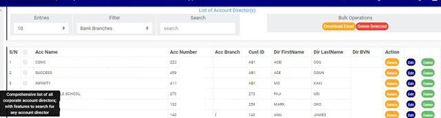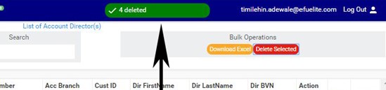 Also, at the top-right area of the General List page, there are bulk operations buttons for the download or delete of more than one account director information together. As shown in fig. 10.4o below, these features are; ‘Download Excel’ and ‘Delete Selected’.