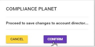 ● Click on ‘SAVE’ to make the changes permanent. A confirmation console will be displayed to confirm your changes. Click on ‘CONFIRM’ as shown in fig. 10.4j to proceed or ‘CANCEL’ to go back to the ‘Edit Corporate Account Director’ console.
