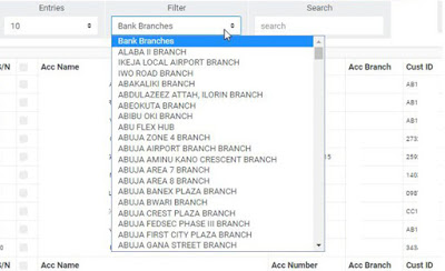 ➔ To see accounts pertaining to one of the branches, select branch name from the filter box as in fig. 8.6d below. The default account list is always for all branches of the institution