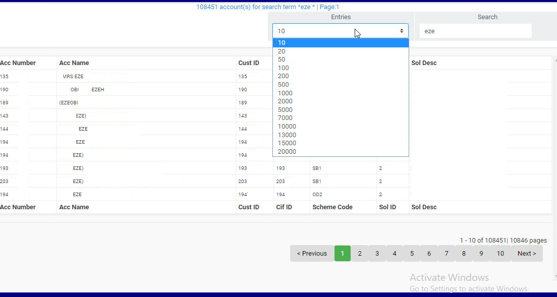 ➔ You can increase the number of accounts you want to see per page by clicking on the ENTRIES box and then select the number of entries you want to see. See fig. 8.6c below for an example.