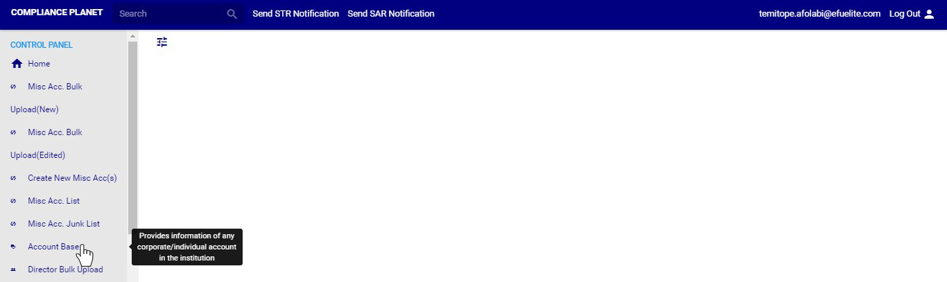 This operation involves searching out miscellaneous accounts that exist on the Compliance planet. Here, the software can give you miscellaneous accounts from each branch of the institution or all the branches together.