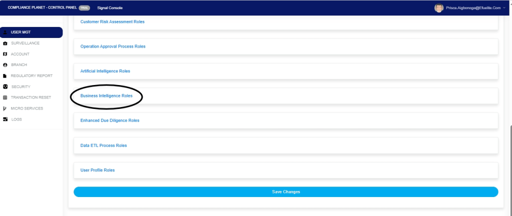 STEP 9: Select all Business Intelligence Roles for the role group. Scroll down and click the “save changes” button.