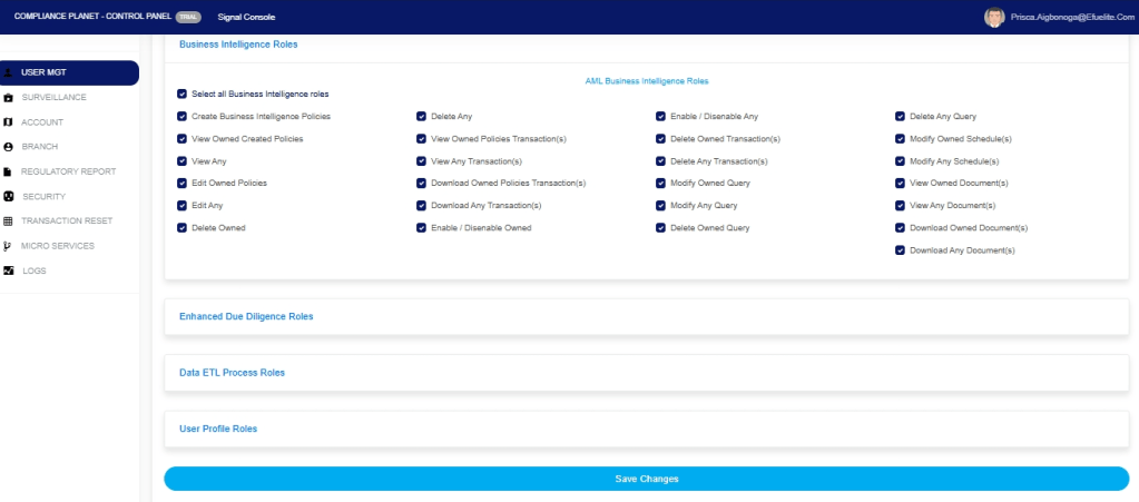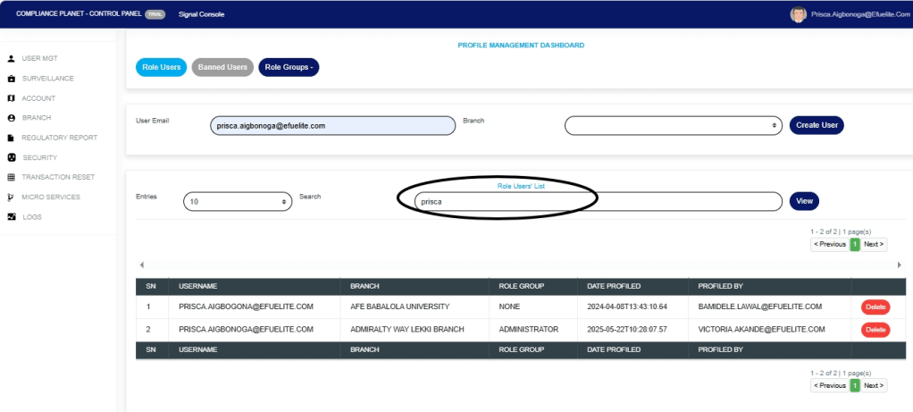 Note: Both profiled and unprofiled users (Bank staff who use the software only to send STR/SAR) can be banned.