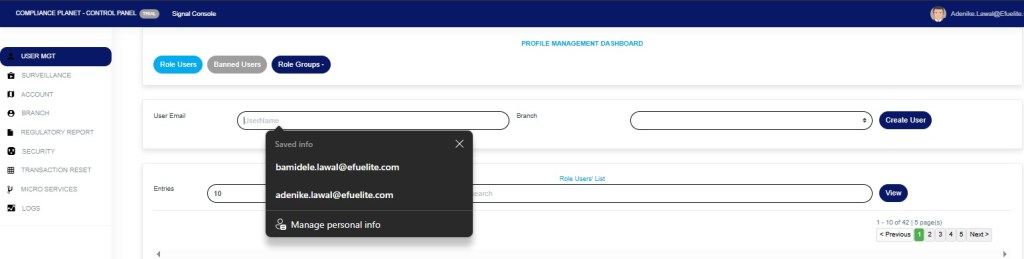 This displays a page as in Fig. 38.2b. showing a list of users who have been created on the Compliance Planet software.