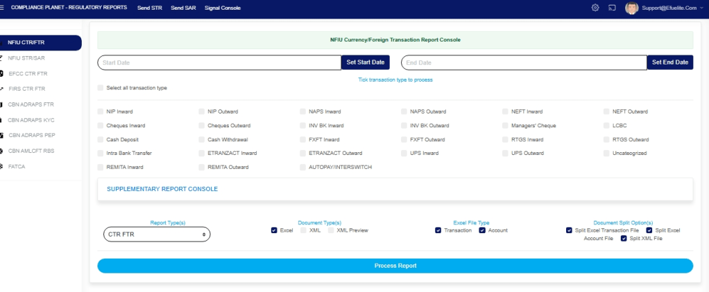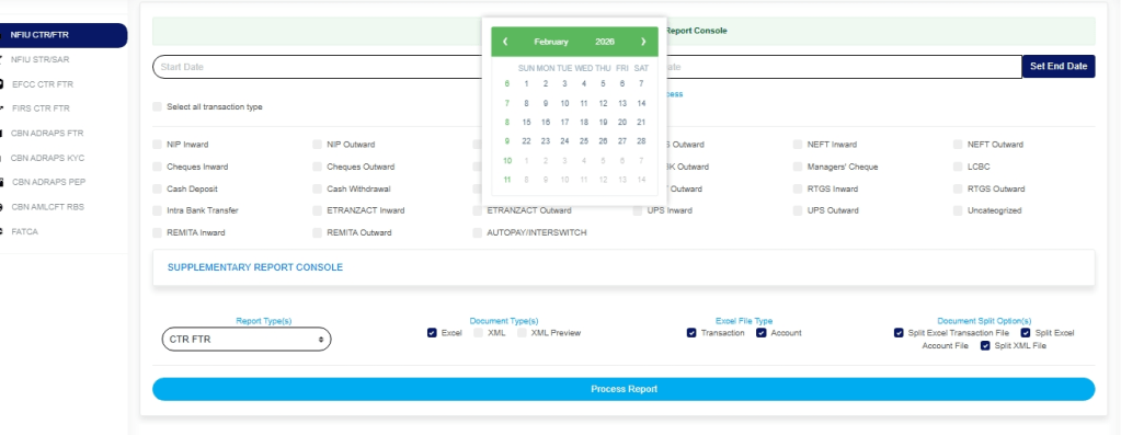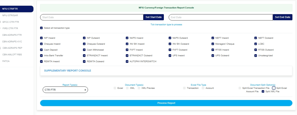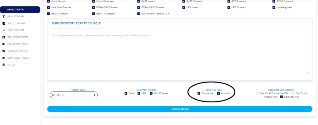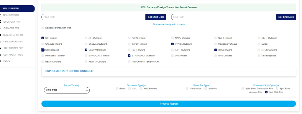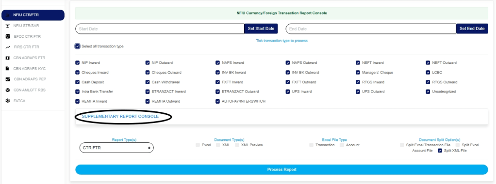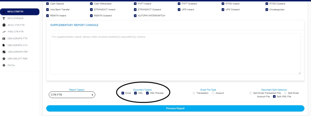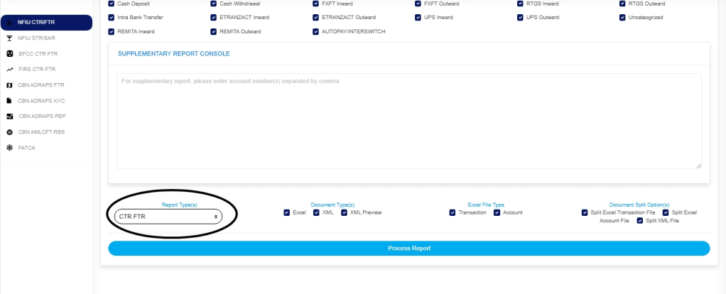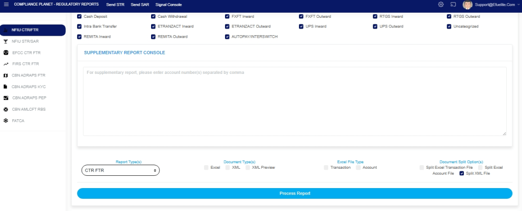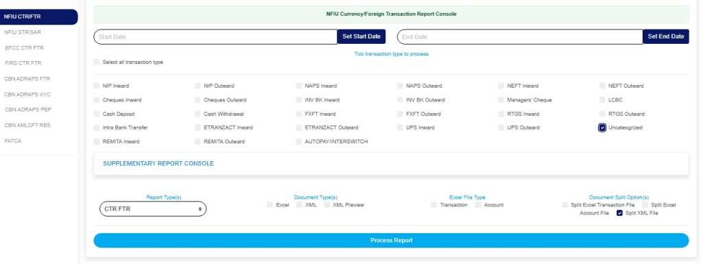 NOTE: Only person(s) Assigned right(s) to ‘process CTR reports’ will be able to carry out this Operation.