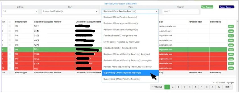 When an STR/SAR notification is rejected by the supervising officer, the notification can be revisited for re-processing by the revision officer.Below are steps on how to revise notifications that have been rejected by the supervising officer.