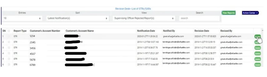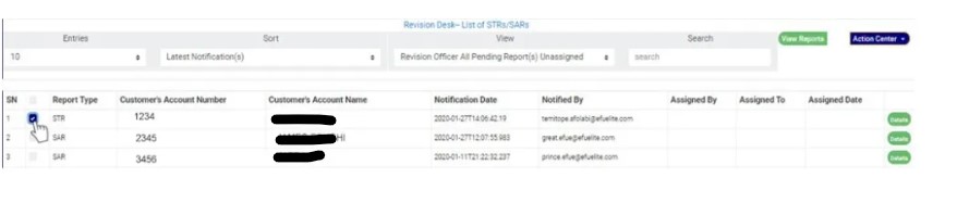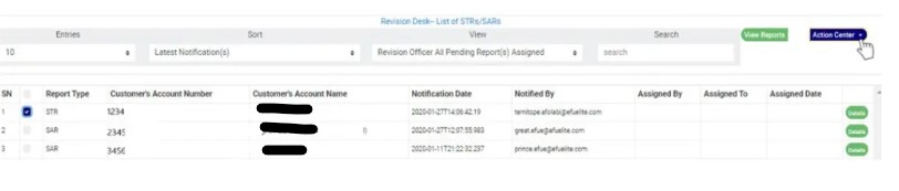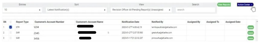 The STR/SAR notification goes straight to the REVISION DESK team lead(s) when successfully sent. It is the duty of the revision team lead(s) to assign notifications to revision officer(s) to review the notifications sent to the compliance team. Below are steps on how to review notifications sent to the compliance desk: